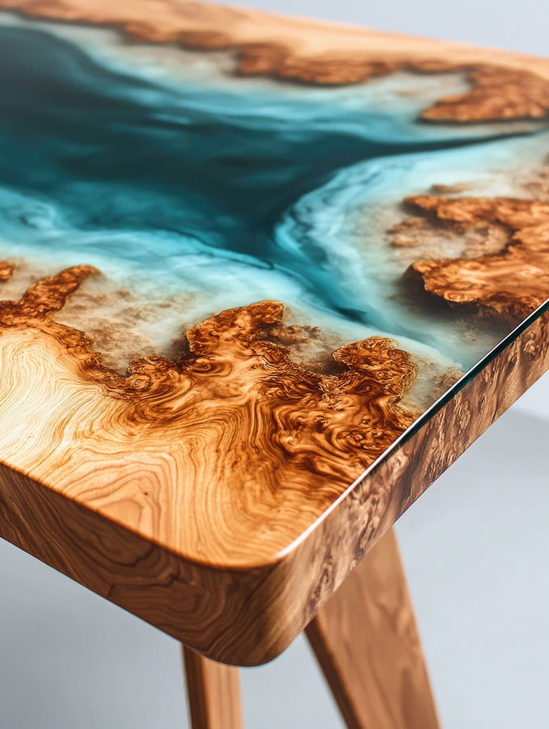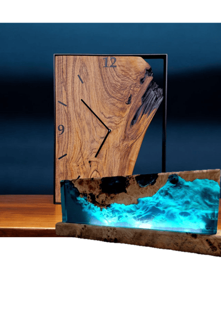 Unser Unternehmen hat eine Werkstatt zur Herstellung von Möbeln und Dekorelementen im modernen Stil eröffnet, bei denen Epoxidharz verwendet wird. Alle Produkte sind handgefertigt. Jedes Stück ist einzigartig und kann nicht wiederholt werden, da es aus einem individuellen Holzstück gefertigt wird – möglich ist nur die Wiederholung des allgemeinen Konzepts des Produkts.
